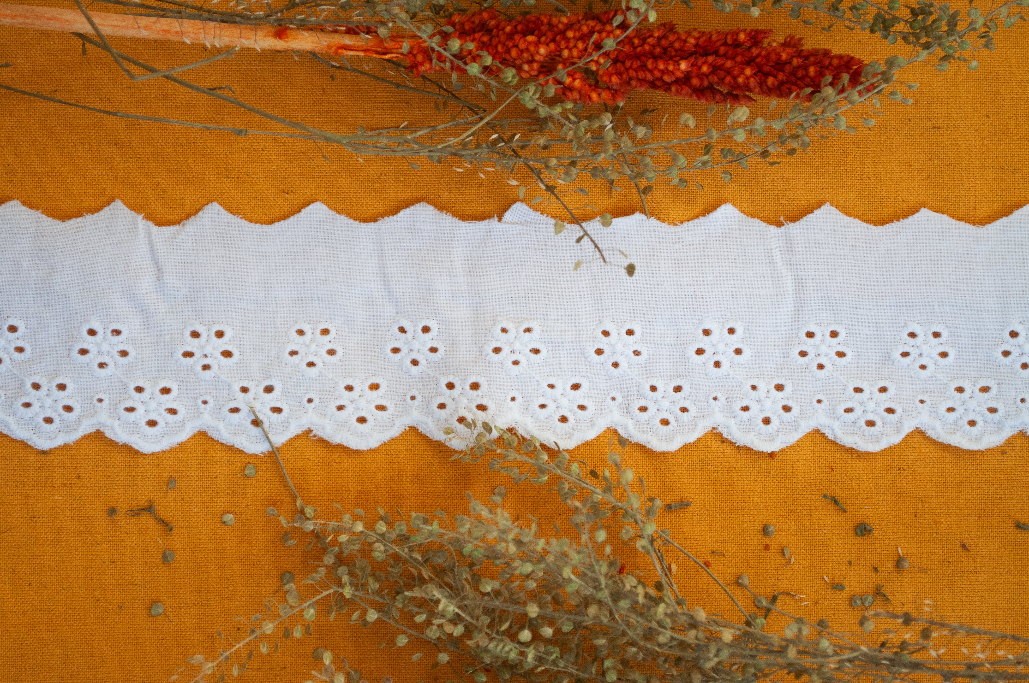 Bordado Inglês Algodão Branco - 6 cm, Por metro